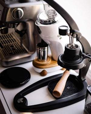 Flair 58 verfügt über eine breite Basis für Stabilität beim Brühen und einen verlängerten Hebel, um unter hohem Brühdruck brühen zu können. Der Hebel hat einen ergonomischen T-Griff für Komfort und Kontrolle.