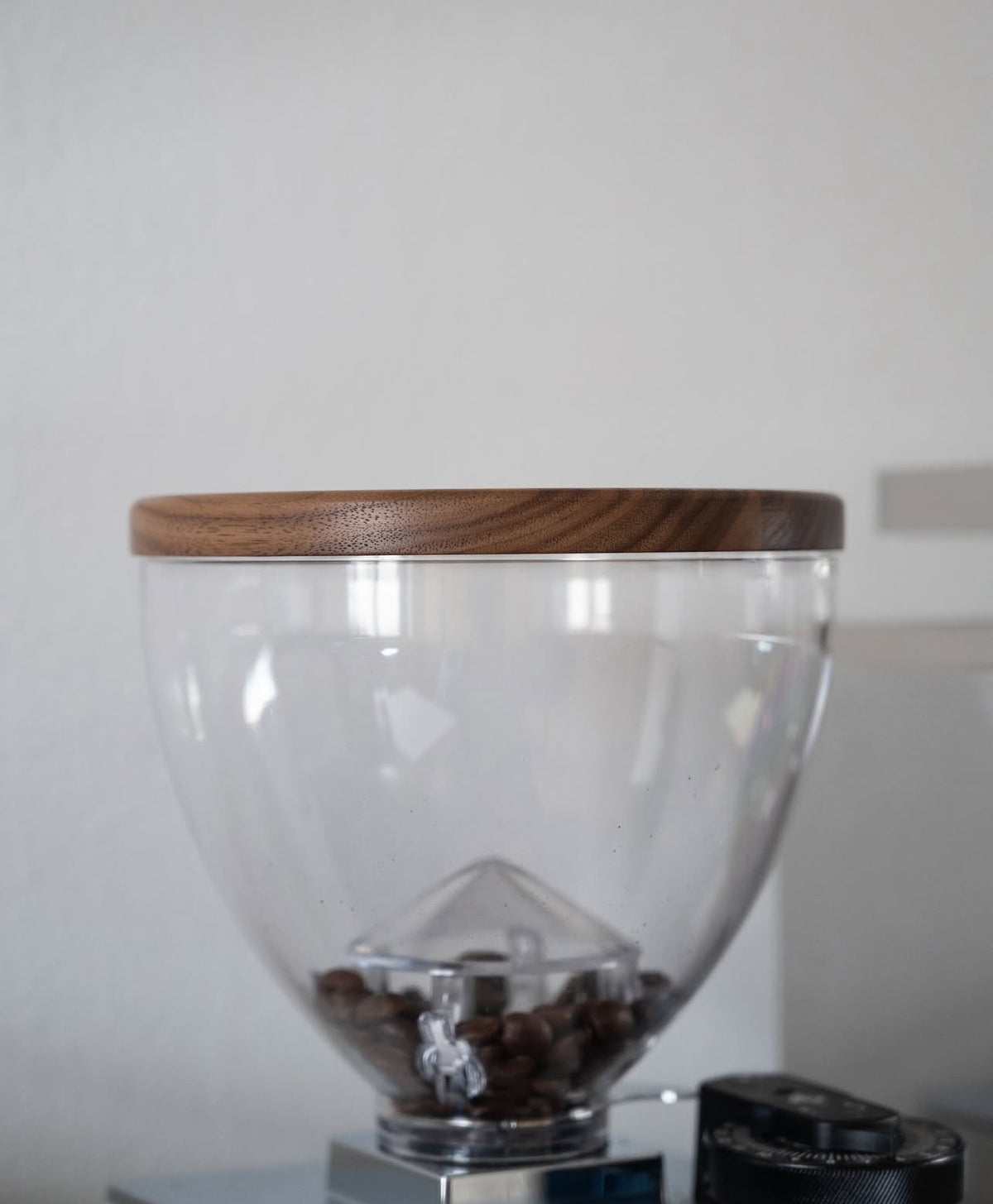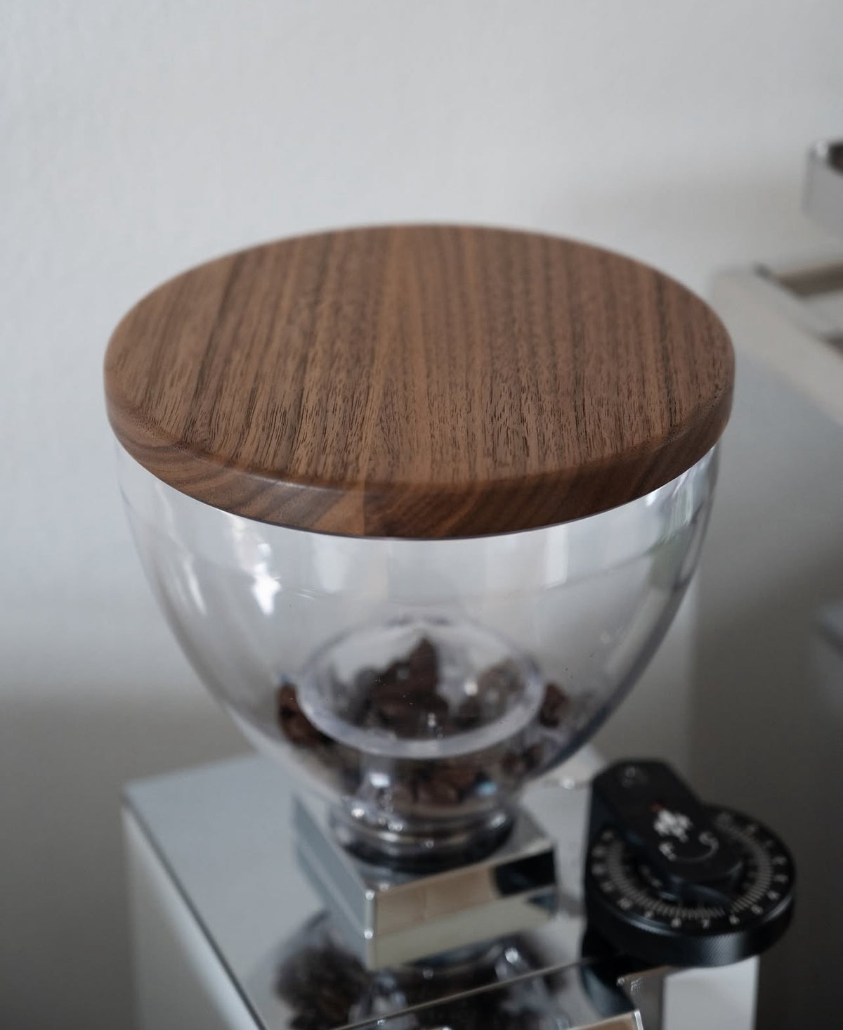 Verbessern Sie sowohl das Aussehen als auch das Gefühl Ihrer Kaffeeecke mit einem handgefertigten Holzdeckel von Wiedemann Hergestellt. Speziell für den runden 350-g-Behälter im Lieferumfang enthalten Eureka Mignon Libra – diese Kappe verbindet Funktion mit einem warmen, natürlichen Ausdruck.