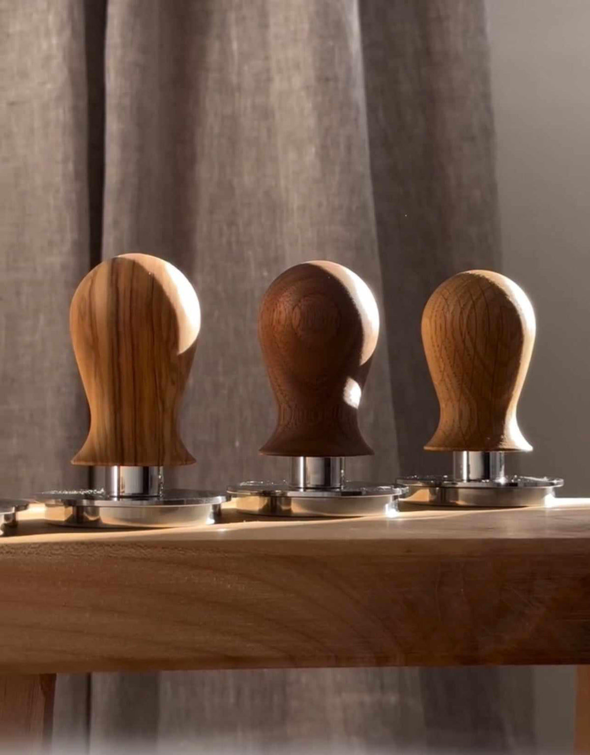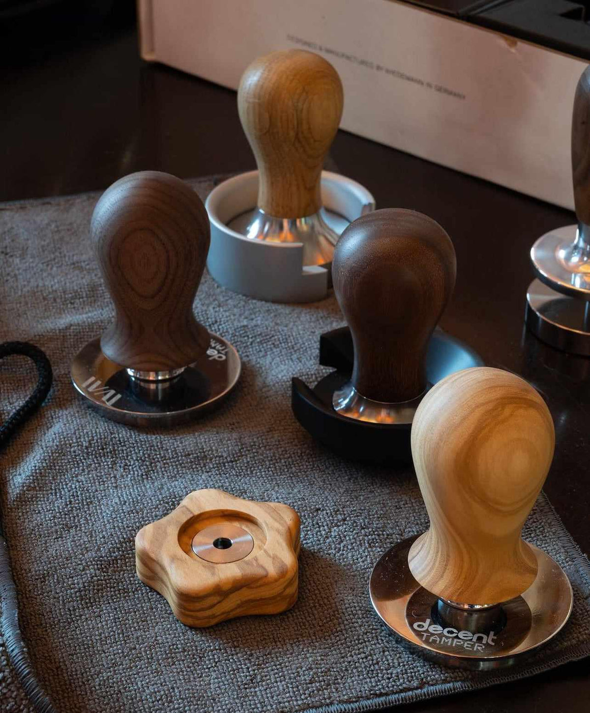 Unser tamper ist kompatibel mit allen gängigen 58mm portafilter, entwickelt in Zusammenarbeit mit Decent Espresso, um eine perfekte Passform und Funktion zu gewährleisten. Mit einem auf 0,05 mm präzise gefertigten Sockel auf einer computergesteuerten Drehmaschine, nicht in einer Form, bieten wir ein tamper, das sich robust und angenehm in der Hand anfühlt. Der große, abgerundete Griff bewahrt das Gefühl von natürlichem Holz, und dank seines Designs ist er leicht zu demontieren für die Reinigung.