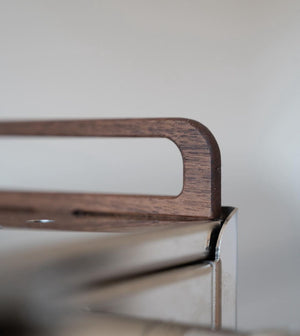 Handgefertigte und sorgfältig ausgewählte Hölzer ergänzen optisch die Metallkomponenten und sorgen für eine einzigartige Haptik.