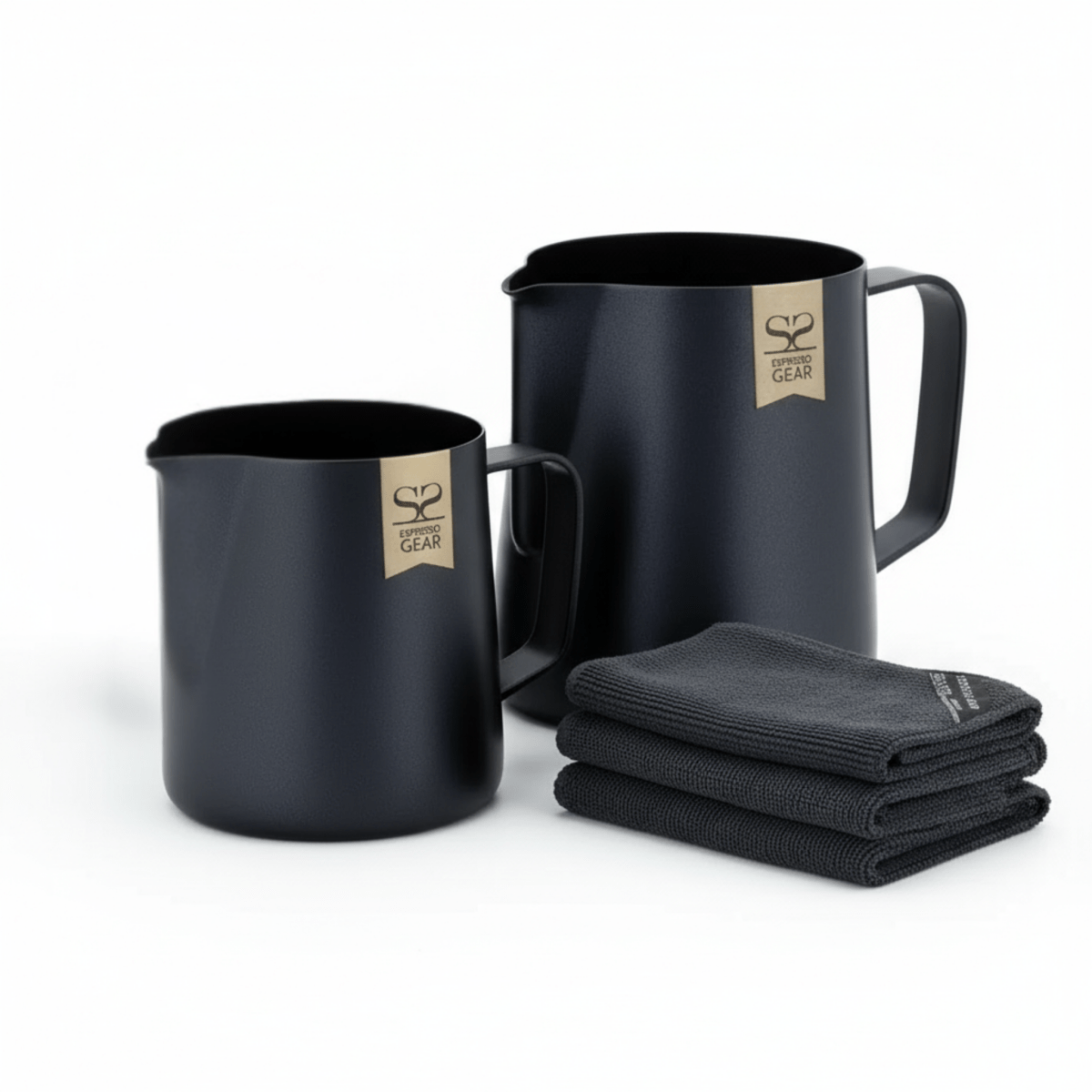 Espresso Gear ist eine renommierte Marke im Bereich Barista-Ausrüstung. Hochwertiger matt schwarzer Edelstahl und Premium-Mikrofaser-Tücher, die für den täglichen Gebrauch geeignet sind. Dieselben Werkzeuge, die Profis verwenden, jetzt in Ihrer Küche.