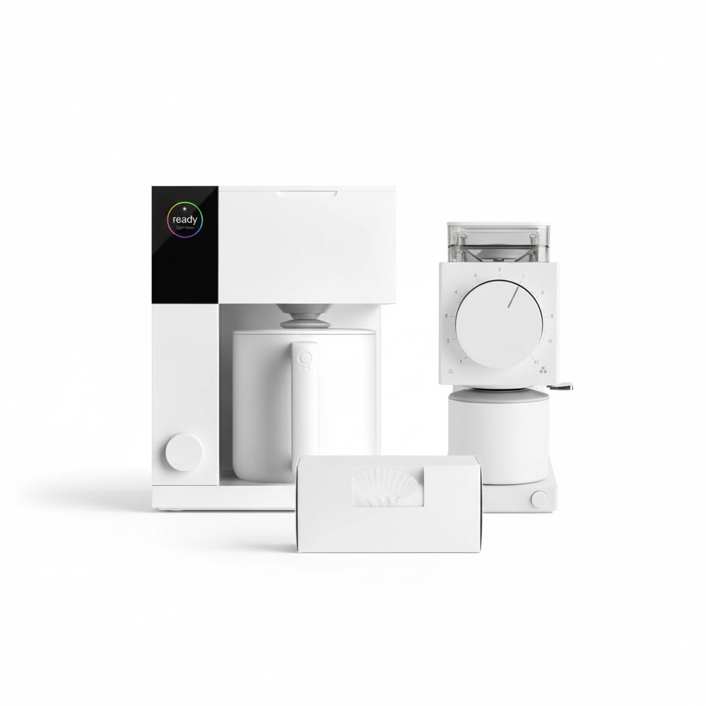 Dieses Starterkit in weißem Finish bietet Ihnen alles, was Sie benötigen, um zu Hause außergewöhnlichen Kaffee zu brühen. Die Kombination aus dem Aiden Precision Coffee Maker und der ODE Gen 2 Kaffeemühle in passendem Weiß schafft ein stilvolles Gesamtbild, das Ihre Küche aufwertet und gleichzeitig professionelle Kaffeequalität liefert.