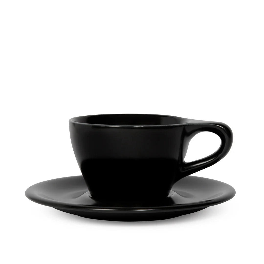 Eine von Baristas anerkannte Cappuccinotasse aus mattem schwarzem Porzellan. Entwickelt in Zusammenarbeit mit preisgekrönten Baristas für optimalen Milchfluss, perfekte Latte Art und ein professionelles Gefühl in jeder Tasse.