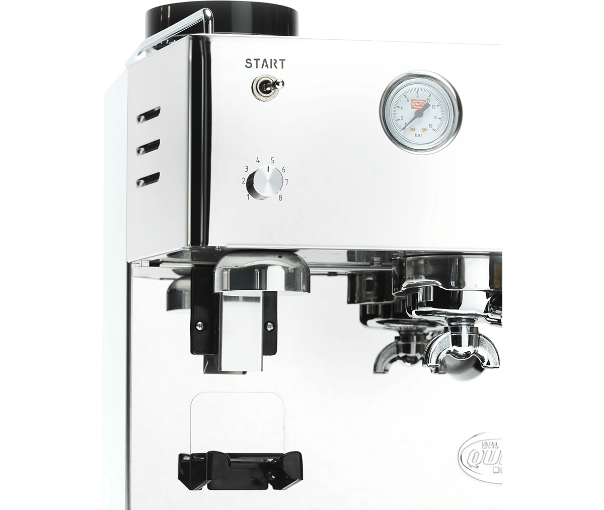 Material: Vollständig aus rostfreiem Stahl; Quick Mill-Brühgruppe mit O-Ring; Aerator-Dampfstab