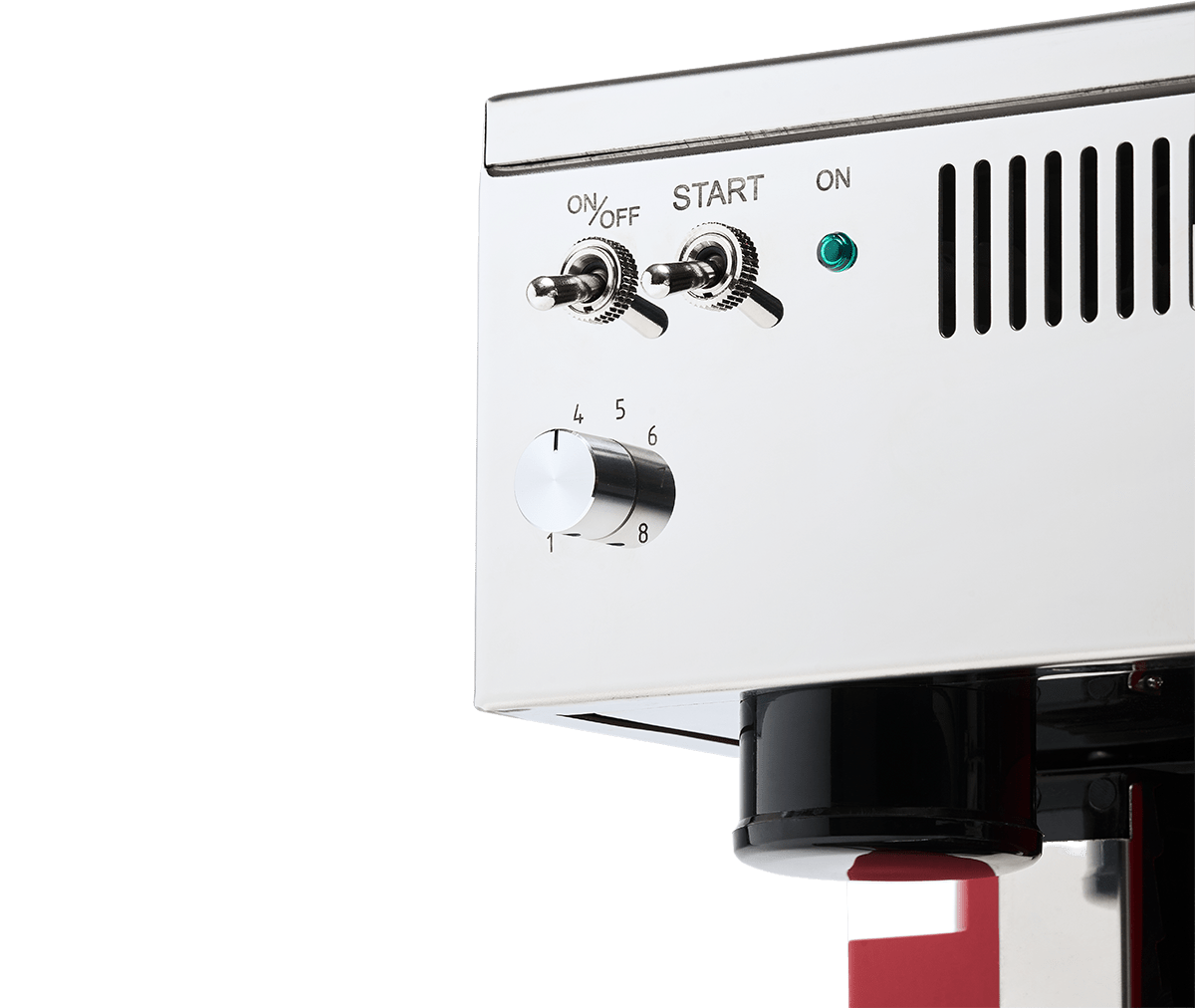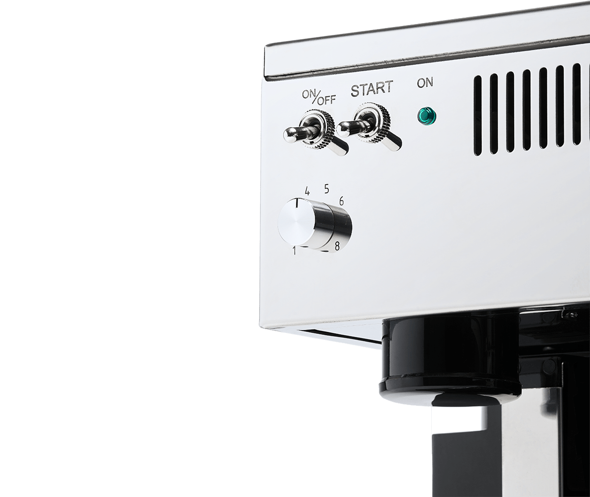 Retrò verfügt über eine integrierte Espressomühle mit 43 mm flachen Mahlsteinen, die eine gleichmäßige Partikelgröße und bessere Extraktion bietet. Stufenlose Mahlgradeinstellung und Dosierkontrolle machen es einfach, die richtige Einstellung für Ihre Bohnen zu finden.