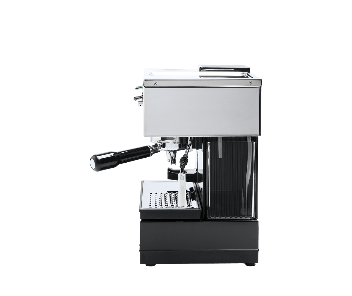 Die Maschine wird über klassische Hebelsteuerungen, Kontrollleuchten und einen integrierten Tamper bedient – ein komplettes und einfaches „Bean-to-Cup“-Erlebnis.