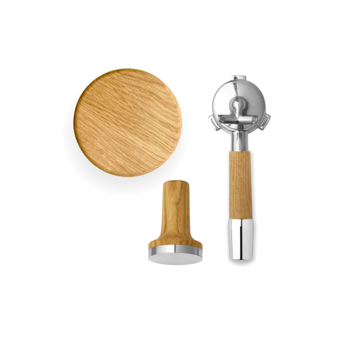 Verleihen Sie Ihrer Sage mit diesem exklusiven und handgefertigten Holz-Zubehörset ein stilvolles Upgrade. Hohe Funktionalität, echtes Gefühl und durchdachtes Design – für Baristas, die Wert darauf legen.